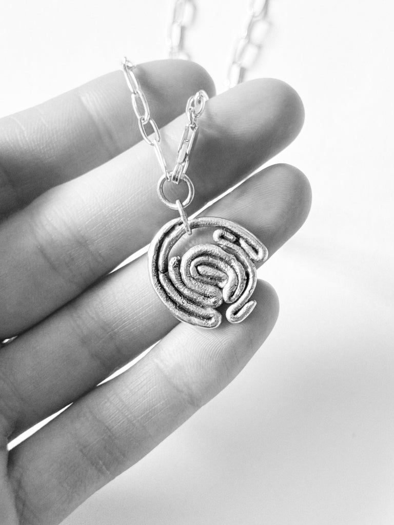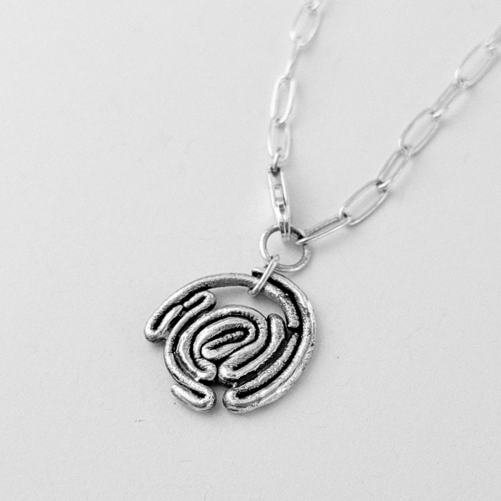 One of a kind silver necklace. Guided by labyrinths, layers, and life unfolding.