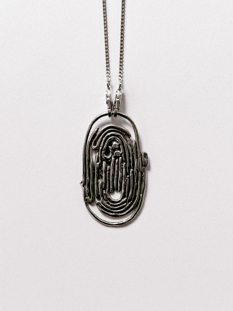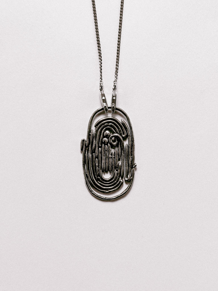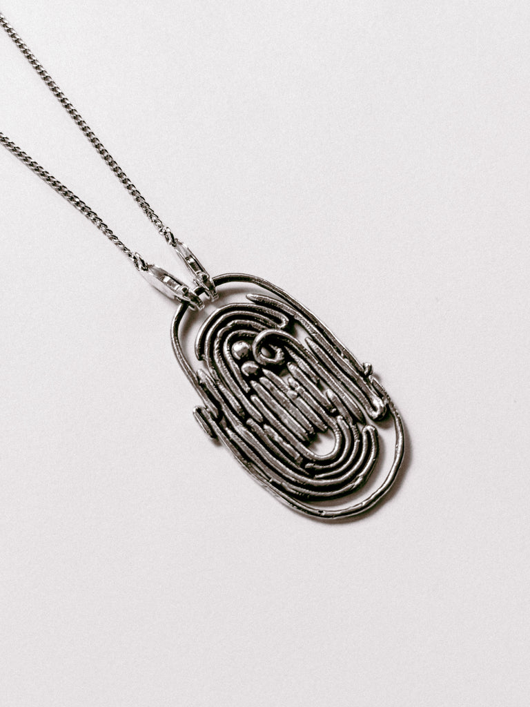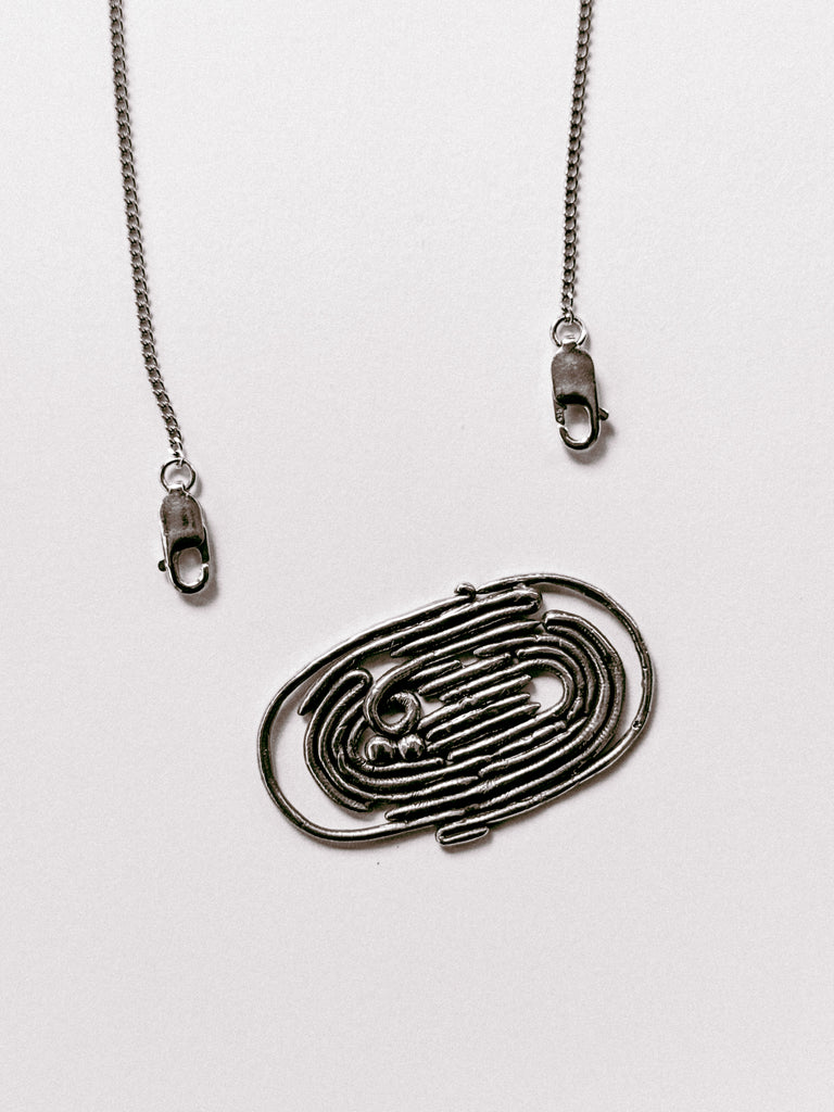 A winding silver statement necklace with organic texture. Inspired by labyrinths, landscapes, and the balances within.