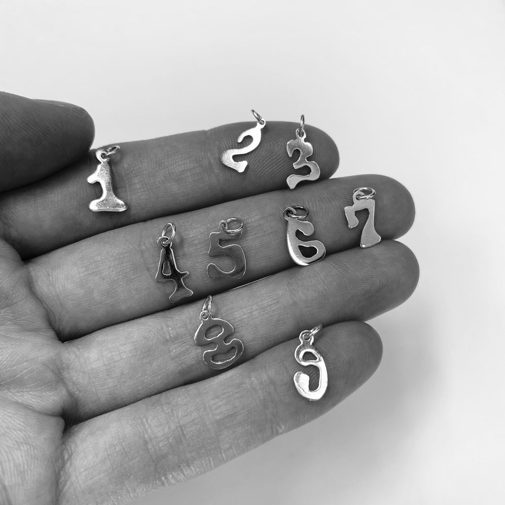 A small number charm hand cut in sterling silver. If you would like this charm built into a chain, simply add all charms and a chain to your cart, and leave a note with the desired order at checkout!